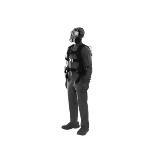 1. 选择一套适合人体模型胸围尺寸的防护服穿在人体模型上,并按照正压式消防空气呼吸器的使用说明,给人体模型正确佩戴正压式消防空气呼吸器,形成一个测试假人。
